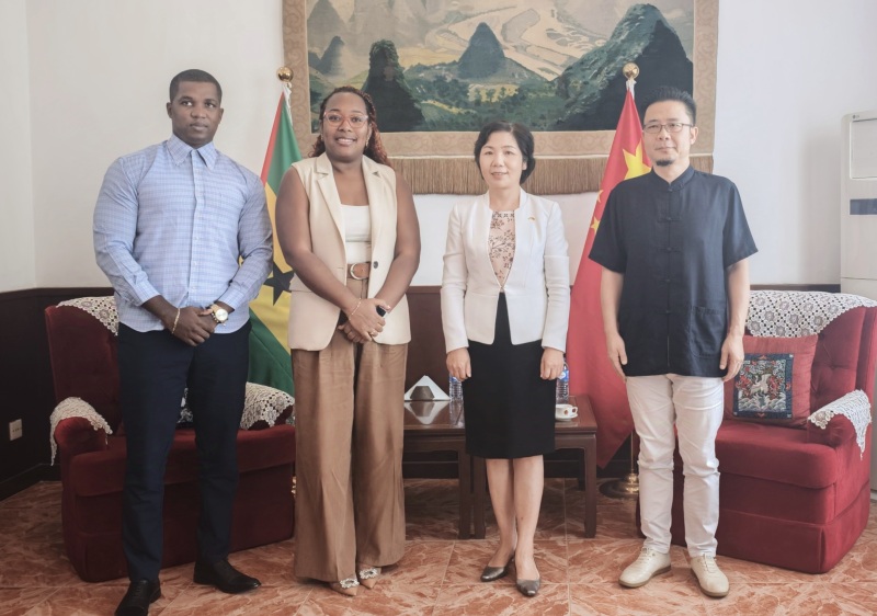 11月25日,徐迎真大使会见联合国儿童基金会驻圣普、加蓬代表Marie-Reine Chirezi Fabry。丁恬参赞陪同。